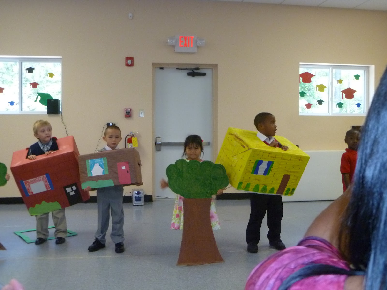 Her graduation was so cute.The kids did several songs for all their families and they even put on a little play of the Three Little Pigs. I think we also have a tiger dad on our hands because Lennah's part was holding up a painted tree and Keith asked me later on that night why Lennah didn't have a speaking part. For some reason Lennah's Pre-K teacher says Lennah is shy and doesn't talk much in class (I find this hard to believe since Lennah is our wild child) so I think maybe she was just too quiet in class for a speaking role.